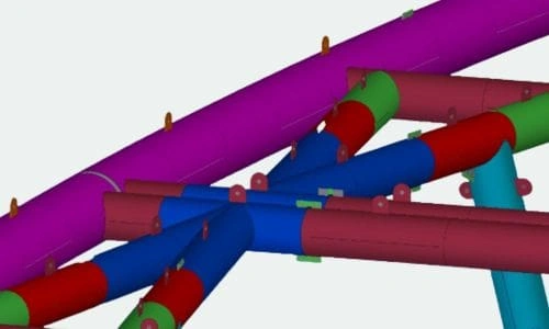 03. Skewed pipe-to-pipe welded connections, requiring extensive development work for the fabrication of plates.