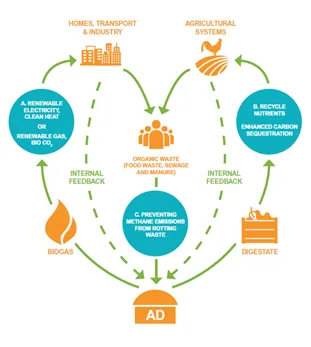 The biogas so produced can be upgraded to methane to be used as a fuel. The digestate or sludge produced in the AD process can be used as organic manure. Organic manures so produced are rich in nutrients and help improve soil composition. Biogas for a Green Future has the potential to replace 33% of the total demand for fossil fuels. Treatment of 105 billion tons of organic waste will require more than USD 100 trillion in investment and has the potential to create 15 million jobs globally.